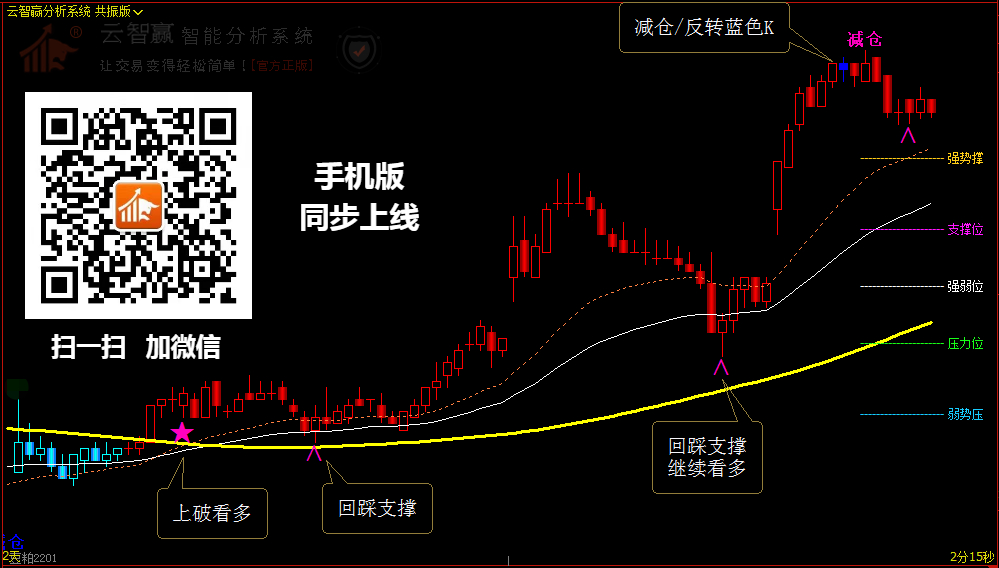 【云智贏(yíng)】分析系統(tǒng),是一款以分析為主,策略為輔的系統(tǒng)分析軟件,全方位適用于所有市場(chǎng)行情,能夠提示支撐和壓力區(qū)間位置、高低位預(yù)警輔助信號(hào),分析策略建議等,幫您規(guī)避很多震蕩行情,提高對(duì)行情的把控力,有效提高您盯盤(pán)的效率。讓行情分析不再難做!