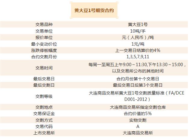 了解期貨市場(chǎng)的投資者,對(duì)期貨品種多少都有點(diǎn)了解,很多投資者常做的農(nóng)產(chǎn)品期貨都有哪些?今天一起來(lái)看看,做的比較多的:大豆期貨又叫做黃大豆1號(hào)期貨,簡(jiǎn)稱豆一,主要是為了區(qū)別豆二。大豆期貨每手十噸,最低變動(dòng)價(jià)格是十元,即波動(dòng)一個(gè)點(diǎn)是十元,交易代碼是A,在大連商品交易所里上市的,是比較早的農(nóng)產(chǎn)品期貨,下面來(lái)看看大豆1期貨開(kāi)戶的內(nèi)容;