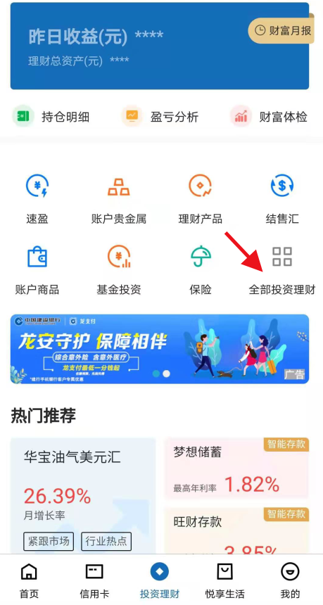 第二步:點擊“投資理財”之后找到中間靠右側(cè)“全部投資理財”