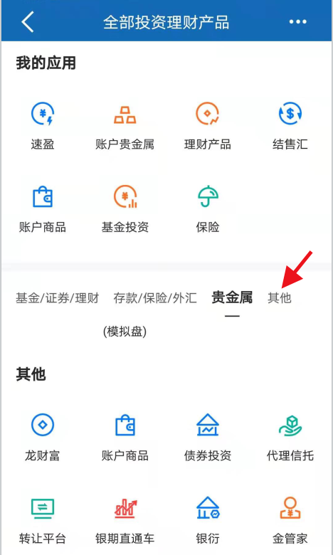 第三步:點“全部投資理財”后,在我的應(yīng)用下方靠右選擇“其他”