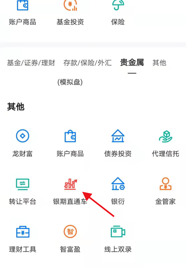 第四步:點開“其他”在手機頁面最下側(cè)找到“銀期直通車”